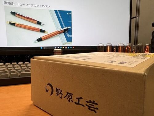 2023年上半期予約分の本紫檀が到着したのが予約から半年待ちの7月だったので、今回のチューリップウッドも到着は年末ぐらいかなぁと漠然と思ってたのですが、思ったより早く到着! ネーム入れや、極太仕様等、別注オプションをお願いしていなかったからかな…