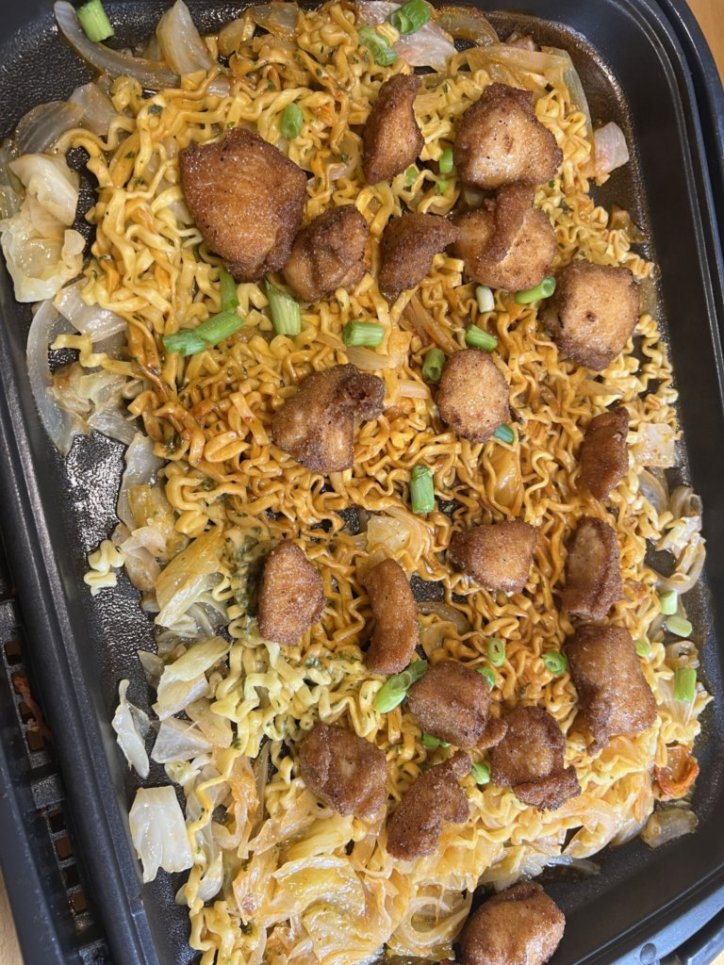 焼き肉のタレをかけて最後にブルダックをほんの少しブレンド