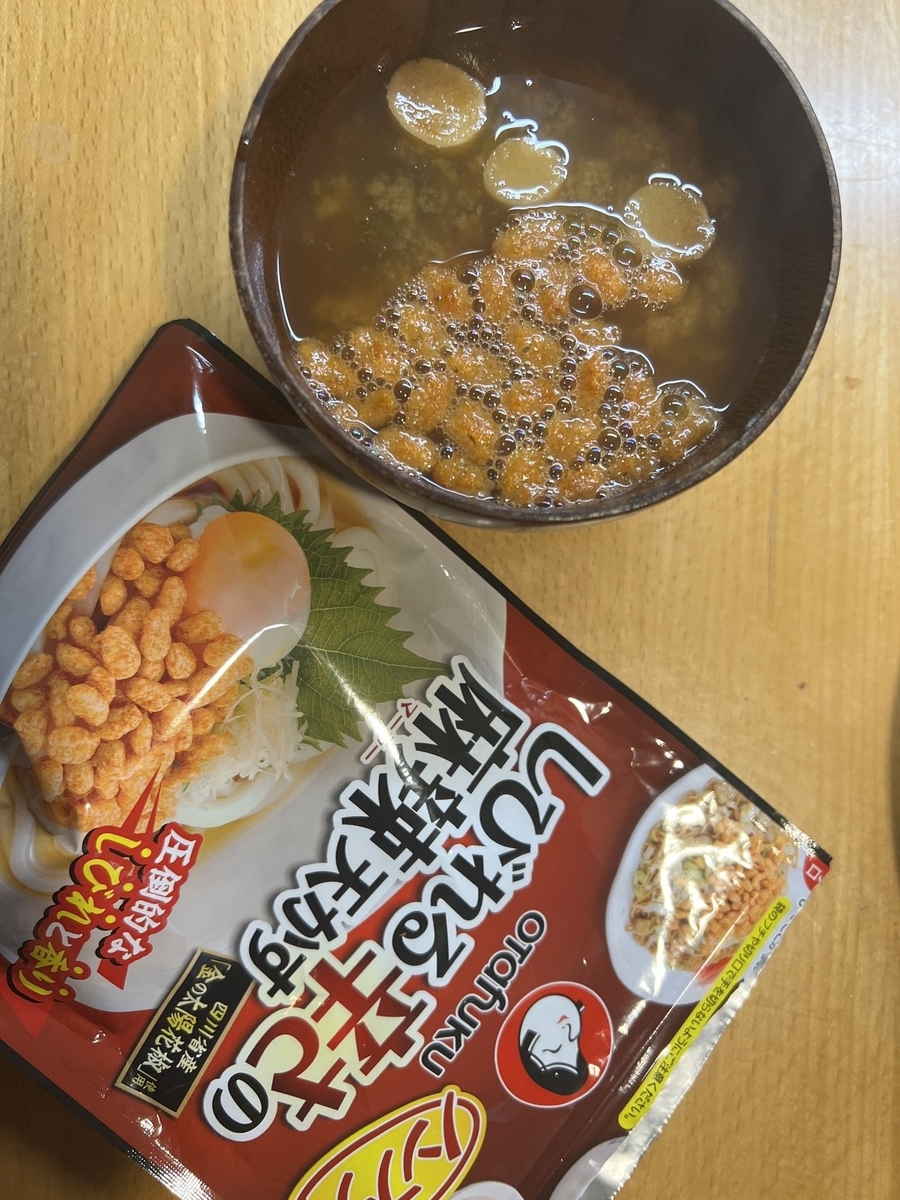 ついでの付け合わせでMyヒットだったのがこの痺れ天かす