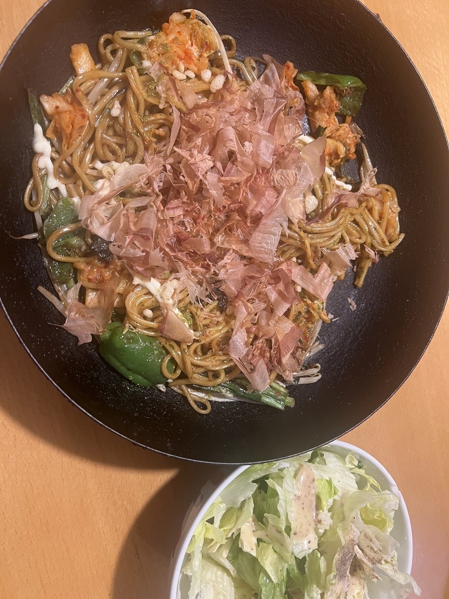 とはいえ、粉末ソースが残ってるので、少しはソース焼きそばも